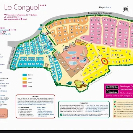 Mobilhomes Quiberon Camping Conguel - Bord de Mer est situé à proximité de la Plage du Conguel et de la Pointe du Conguel. Cet établissement confortable propose des mobil-homes équipés avec terrasse, salon et télévision. Vous pourrez profiter d'une cuisine entièrement équipée et d'une salle de bains privative. Des activités comme le ping-pong et la pêche sont possibles dans les environs. Avec un parc aquatique sur place, il est idéal pour les familles.
